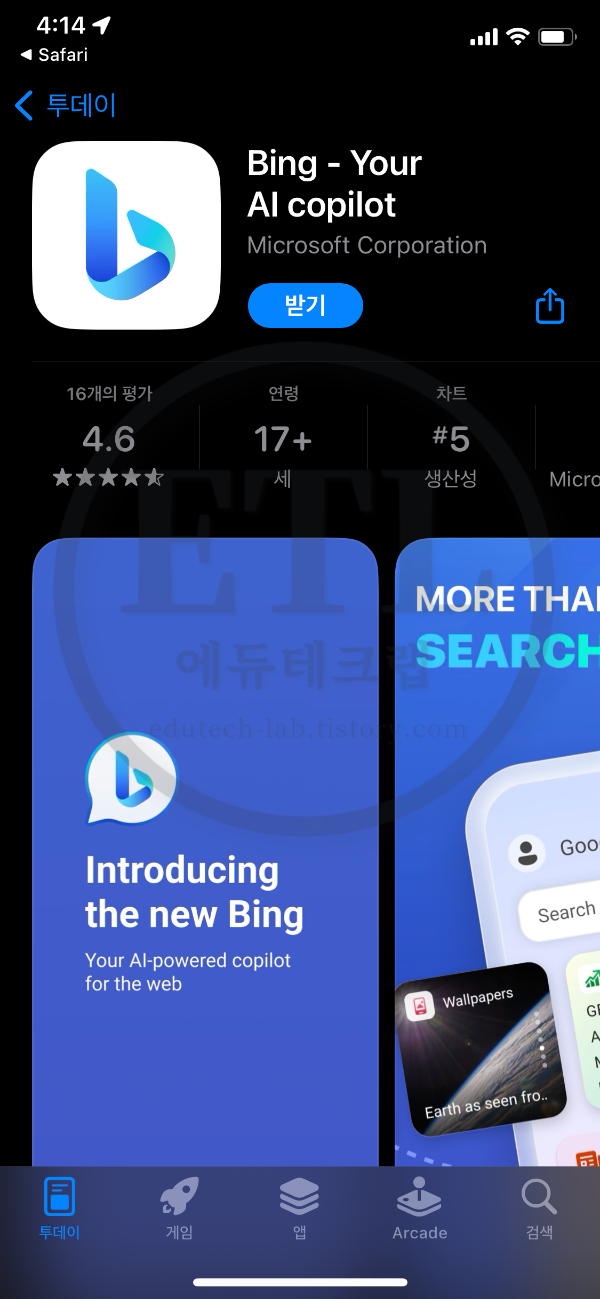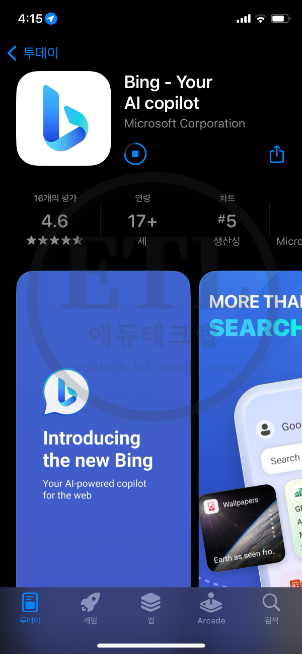 - 빙 앱을 다운로드합니다.