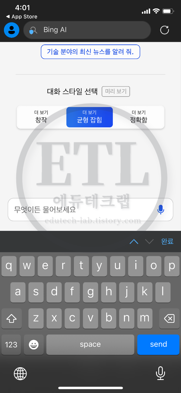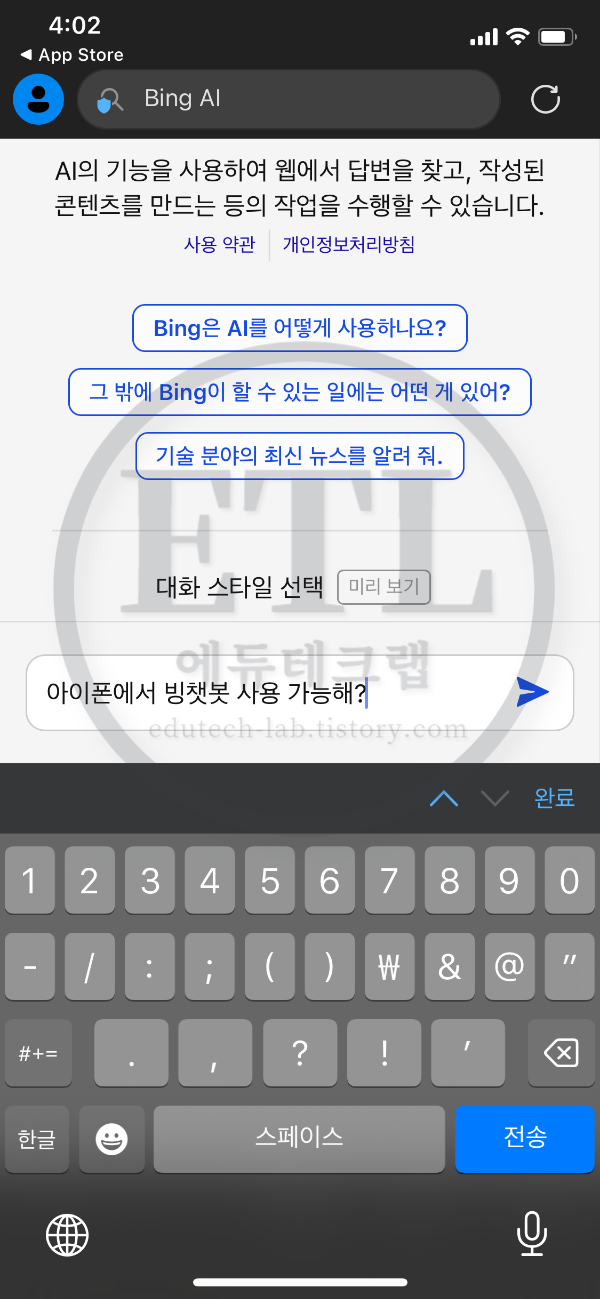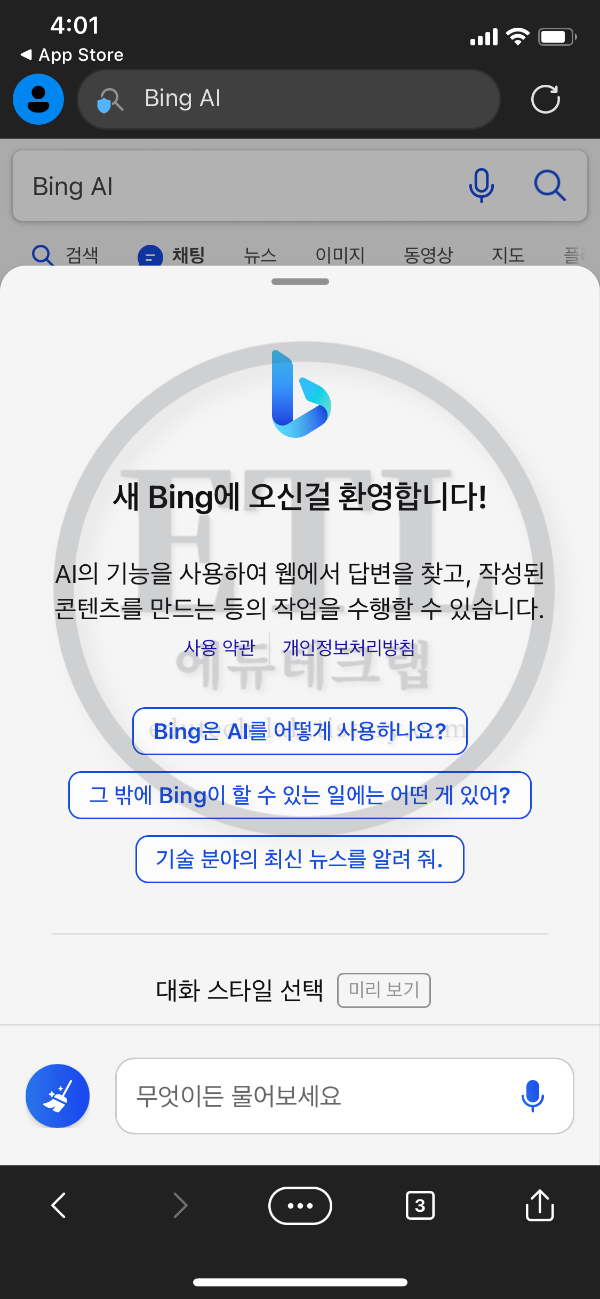 스마트폰에서 빙AI 빙챗봇을 사용하는법은 다음과 같습니다.