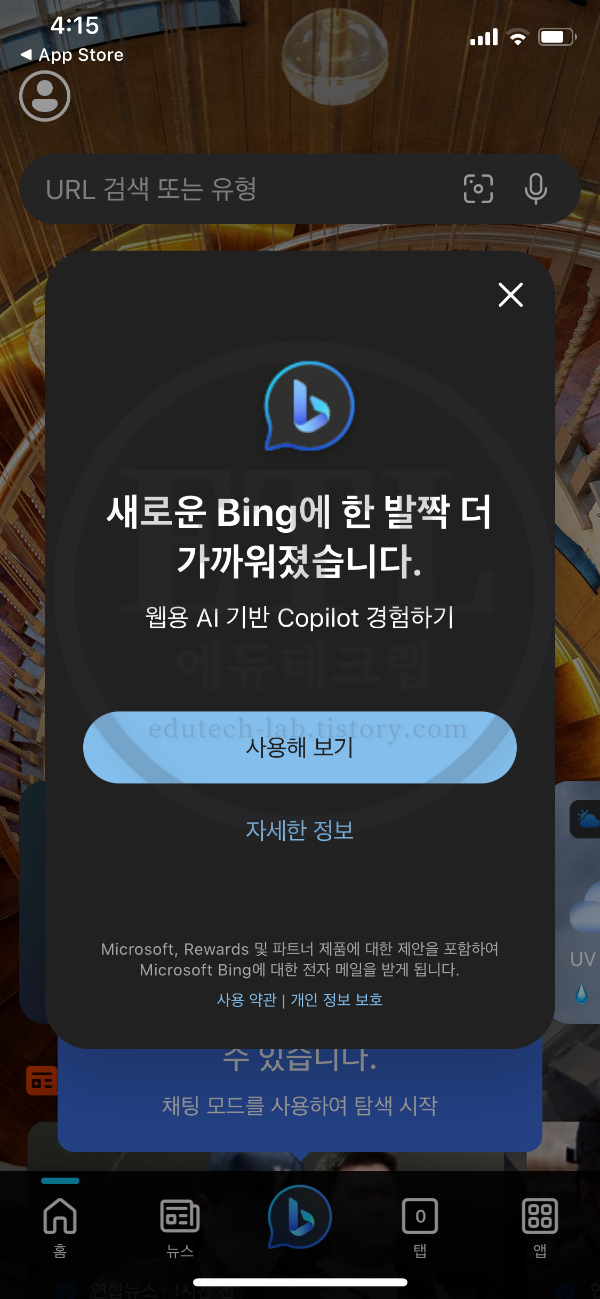 뉴 Bing 새 Bing 새삥? 새빙 뉴빙 앱을 다운 받습니다.