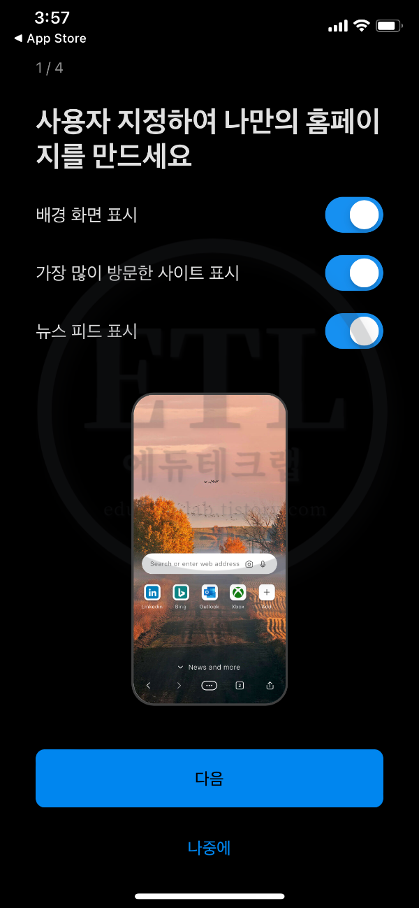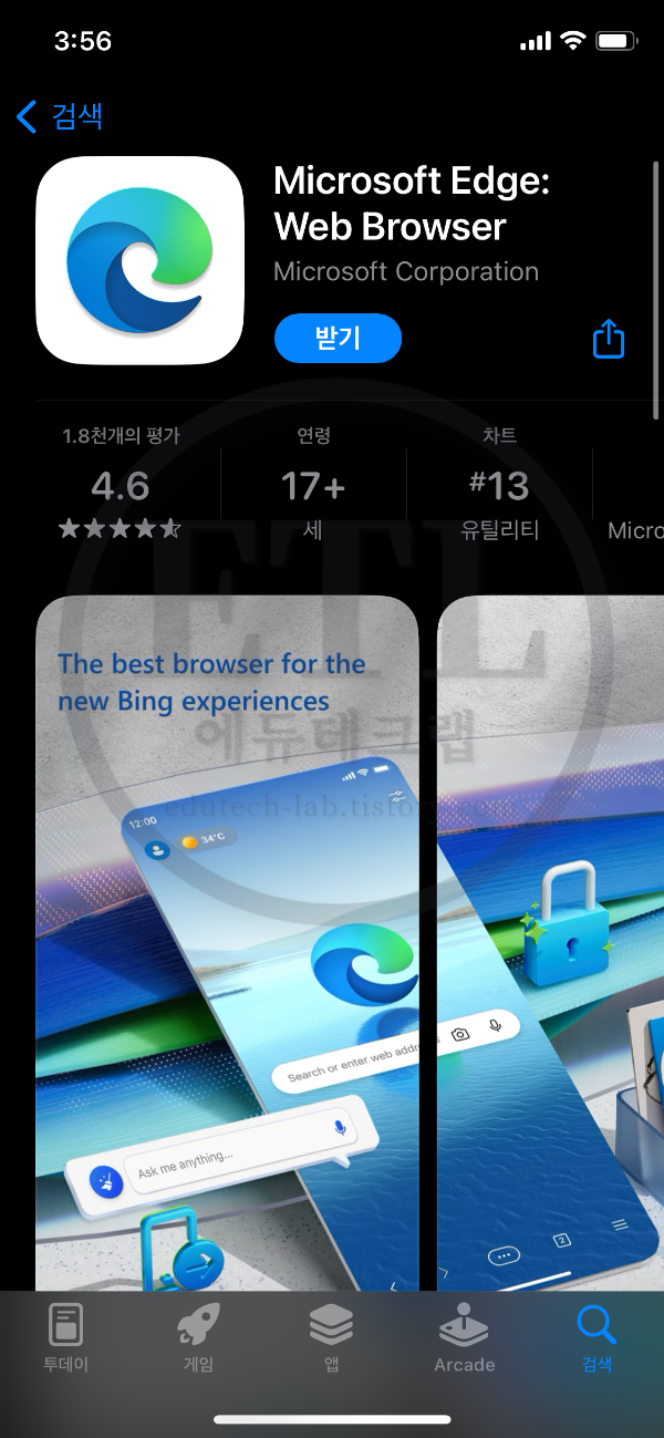 먼저 스마트폰 스토어인 앱스토어나 구글플레이스토어에서 마이크로소프트 엣지를 검색합니다.