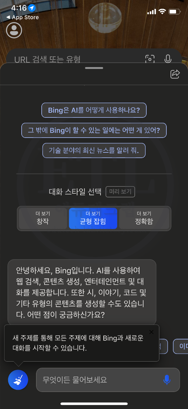 뉴 Bing 새 Bing 새삥? 새빙 뉴빙 앱은 마이크로소프트에서 제작한 AI copilot앱입니다.