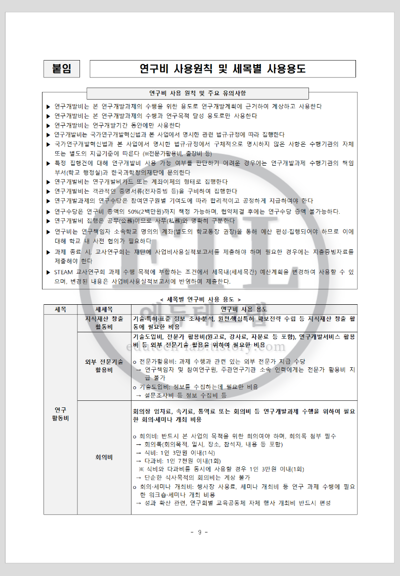 특히 2023 STEAM 교사연구회를 통해 지원되는 예산을 연구비 사용원칙 및 세목별 사용용도에 맞춰서 적절하게 집행되어야 할 것입니다.
