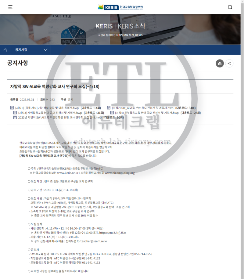 이상으로 한국교육학술정보원이 모집하는 2023 SW‧AI교육 역량강화 교사 연구회 모집 포스팅을 마칩니다. 감사합니다.
