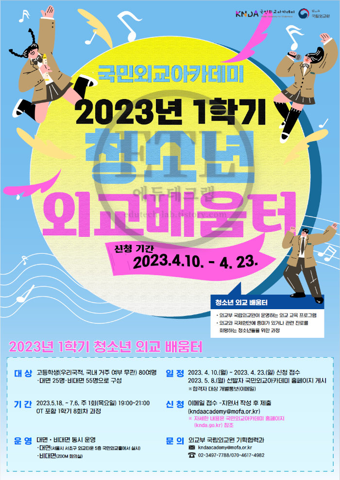 2023년 1학기 「청소년 외교 배움터」 수강생 모집(마감 4.23.(일) 23:59)