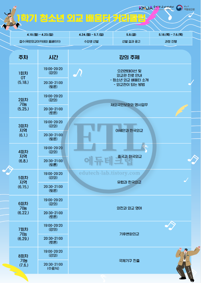 외교부 국립외교원, 2023년 1학기 청소년 외교 배움터 수강생 모집 안내 포스팅을 마칩니다. 감사합니다.