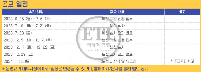 자세한 사항은 청주교대 교육연구원과 한국교원대 교육연구원 홈페이지를 참고하기 바랍니다.