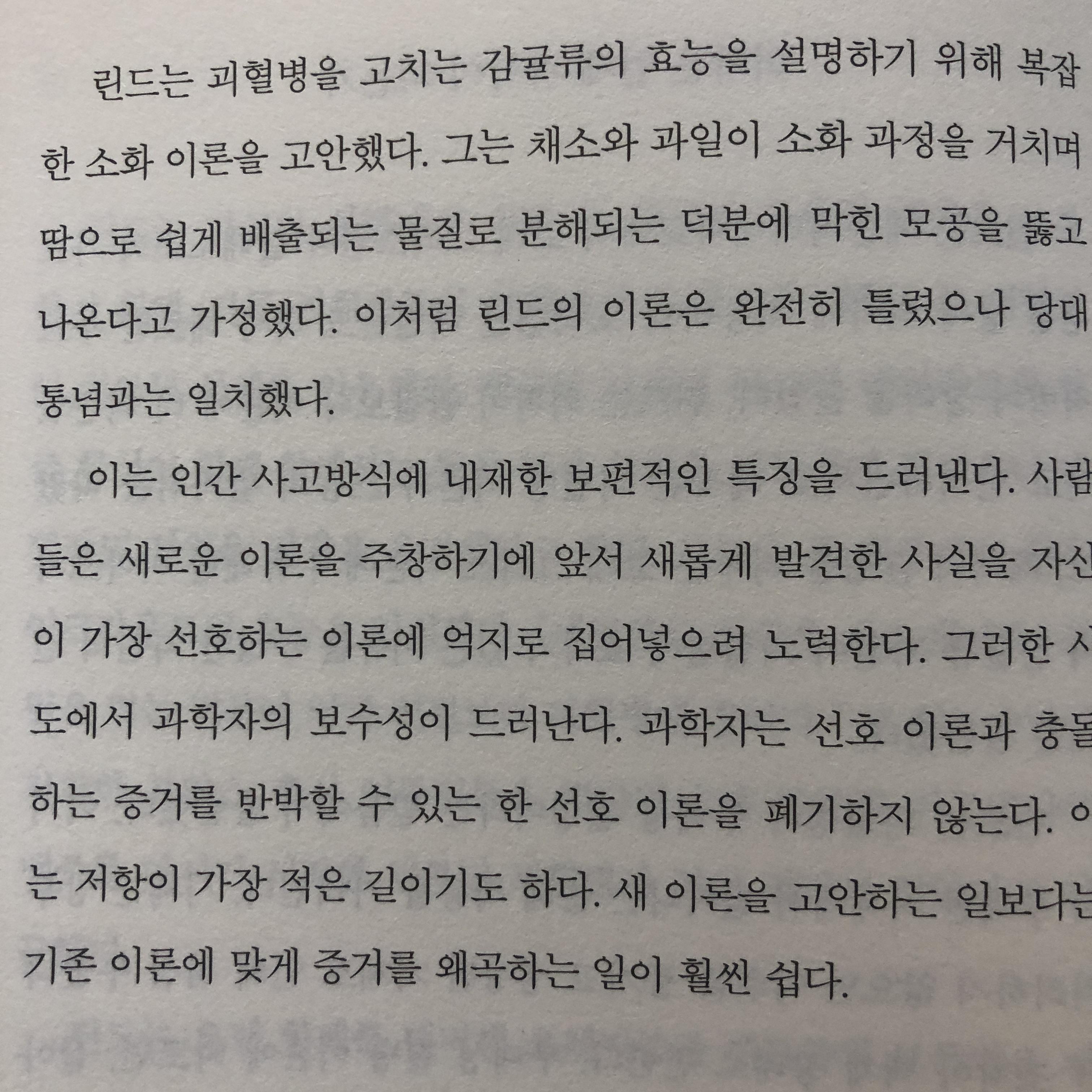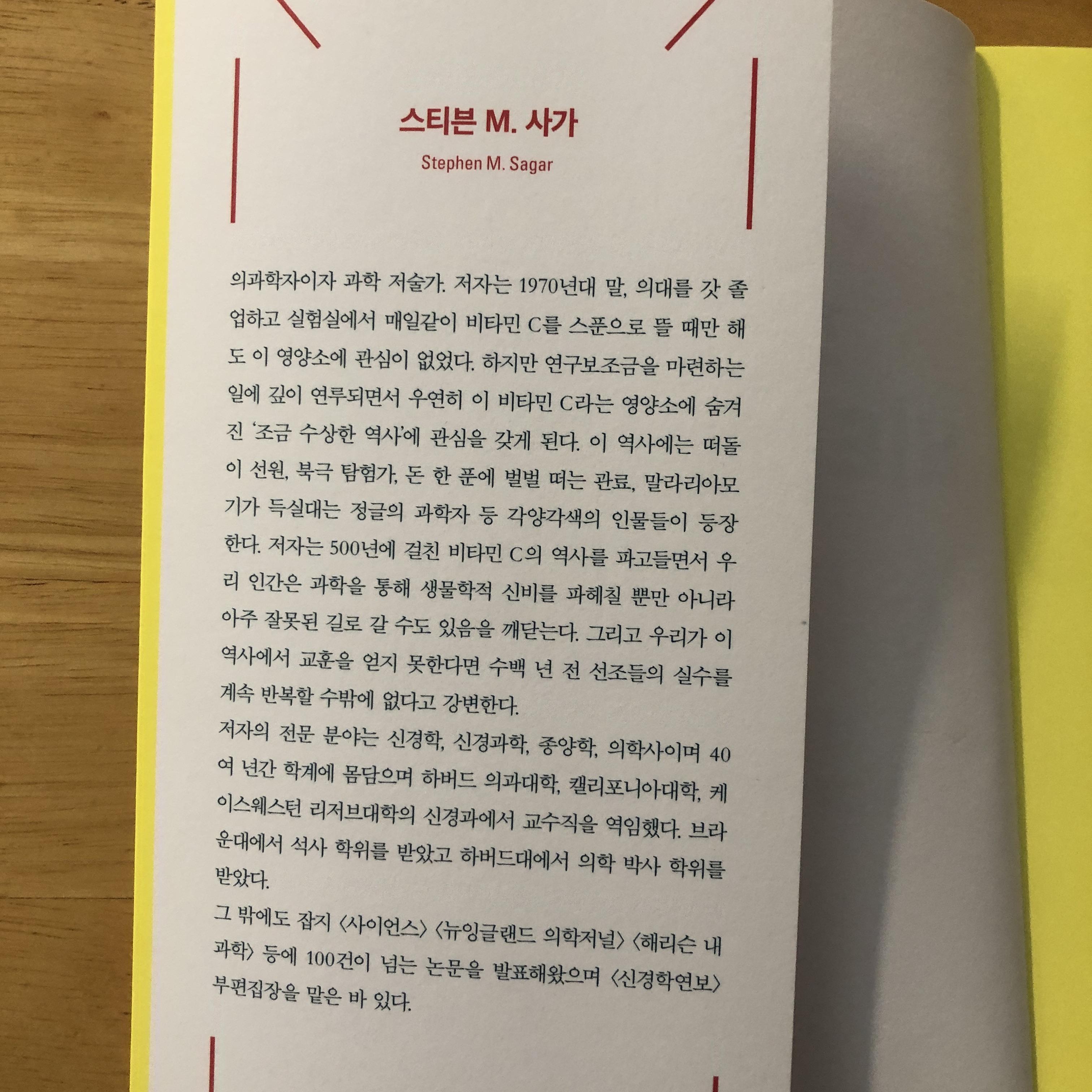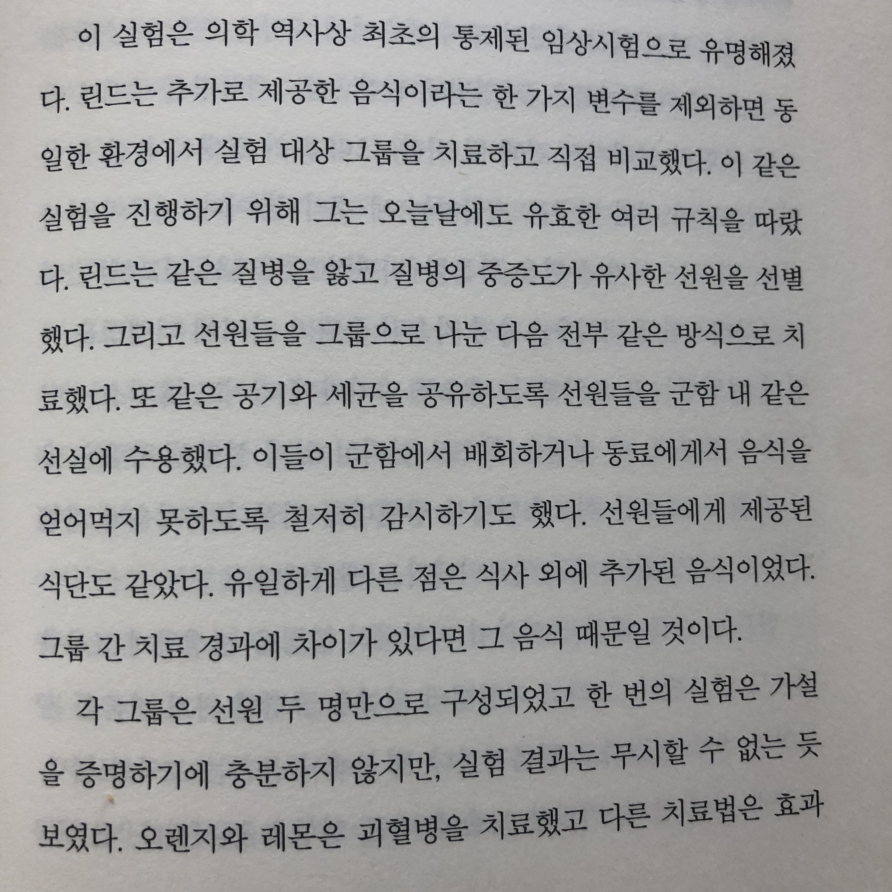 이처럼 단순히 비타민 C에 대한 지식뿐만이 아니라 새로운 발견을 잘못된 이론에 맞추려는 경향과 중요한 발견을 제대로 전달하지 못했을 때 발생할 수 있는 문제 등을 알 수 있어서 이 책이 정말 좋았습니다.
