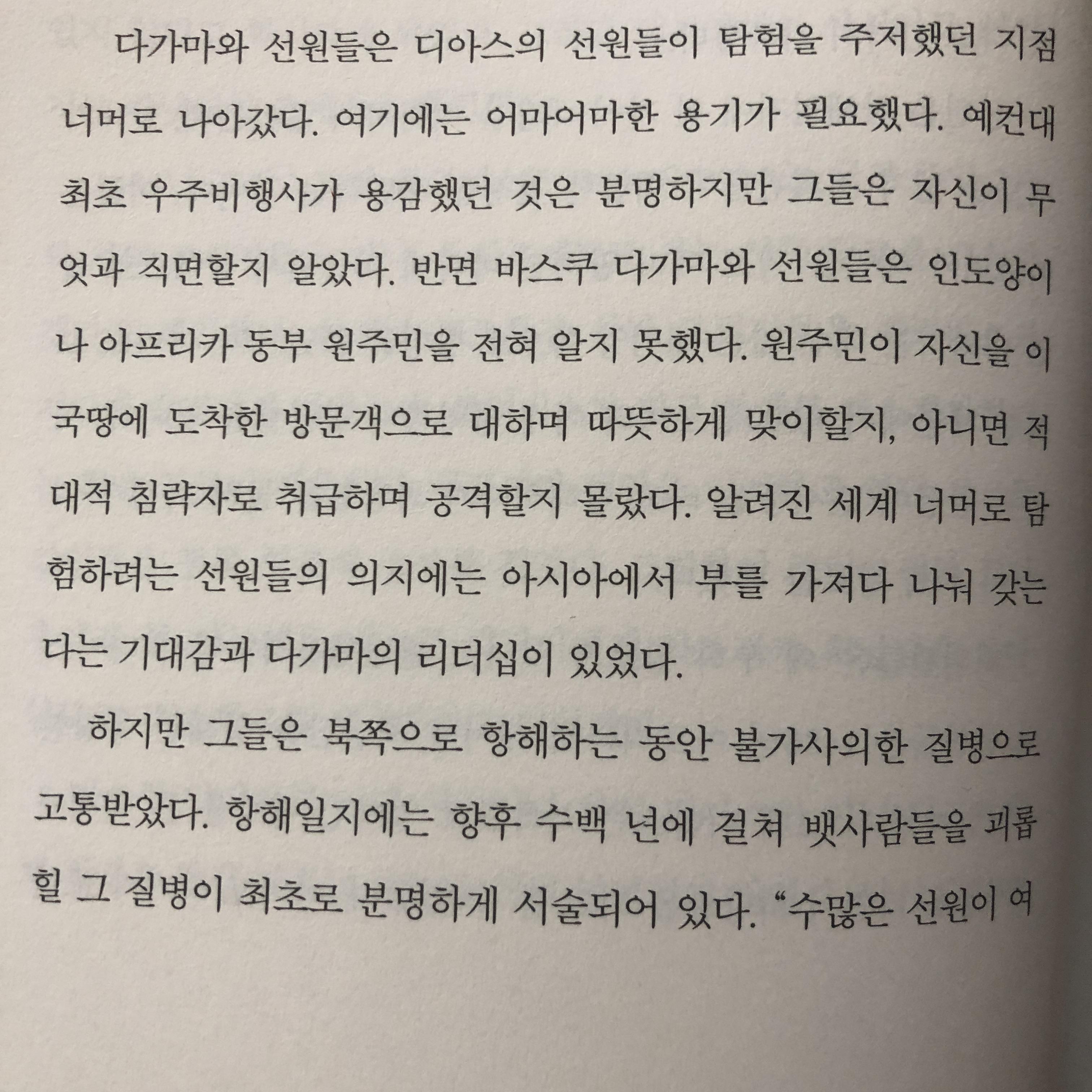 제가 이 책을 처음 읽기 시작할 때 저의 눈길을 끌면서 몰입할 수 있었던 이유는 바로 대항해시대의 과감한 탐험가들과 선원들이 대면했던 어려움들을 생생하게 묘사하고 있기 때문입니다. 그들은 알려지지 않은 세계로 나아가면서 많은 불확실성과 위험성에 직면했습니다. 그러나 그들의 용기와 리더십, 그리고 부를 얻고자 하는 기대감이 그들을 앞으로 나아가게 했습니다.
