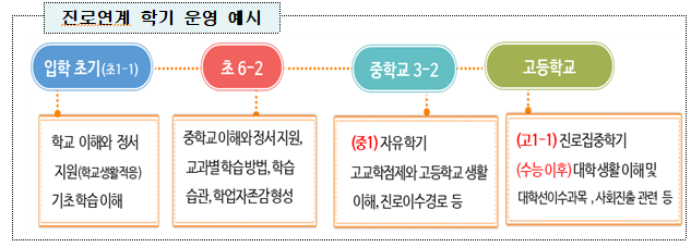 - 학교급 전환시기의 진로 연계 및 학교생활 적응을 위한 진로연계학기 도입