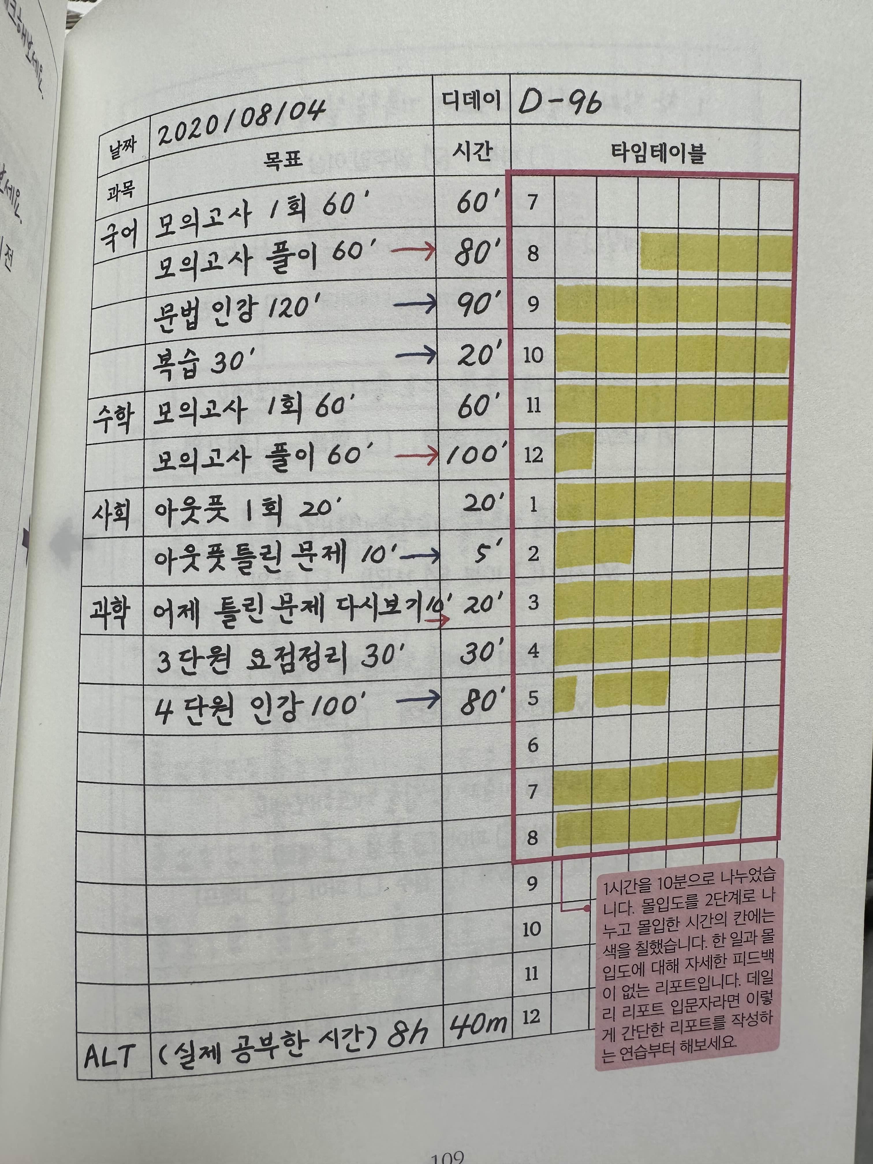 그런데 이 책에서는 '데일리 리포트'를 통해 이런 몰입도를 최대한으로 끌어올릴 수 있다는 점이 인상적입니다. 그 결과로, 몰입을 하게 되면 머리가 더욱 총명해지고, 행동이 빨라지며, 결과적으로 일이 생각보다 쉽게 또는 빠르게 끝날 수 있다는 것입니다. 이는 시간을 '벌게' 되며, 그 '보너스 시간'은 또 다른 활동에 사용할 수 있다는 점이 매우 흥미롭고 가치 있는 관점입니다.