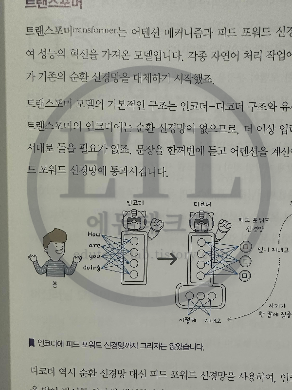 제가 개인적으로 이 책에서 가장 백미라고 생각하는 부분이 비로 트랜스포머 모델의 기본적인 구조와 어텐션 메커니즘에 대한 설명입니다.