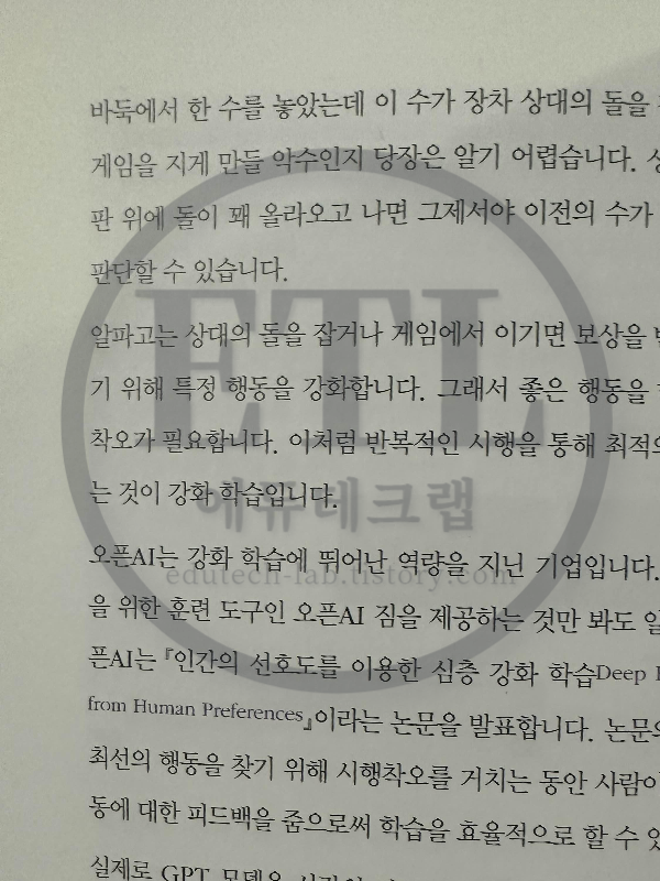 작가는 GPT의 작동 원리와 훈련 과정을 자세히 설명하며, 트랜스포머 구조와 어텐션 메커니즘의 중요성을 강조합니다. 또한, 자기 지도 학습과 강화 학습에 대한 개념을 적절히 소개하여 GPT의 훈련 방법을 설명하고 있습니다.
