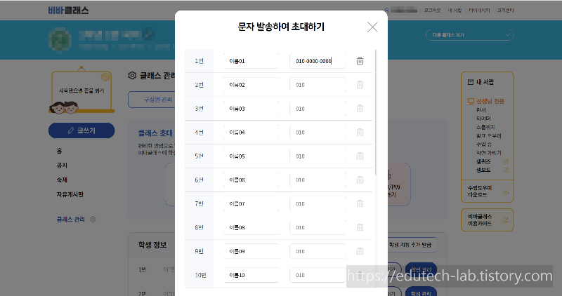 앞서 언급했듯이 비바클래스에서는 학생 초대를 위한 문자 발송을 무료로 지원합니다.
