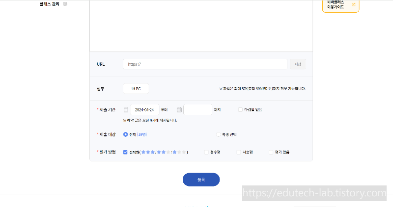 비바클래스의 숙제 게시판에는 다양한 기능이 있습니다.