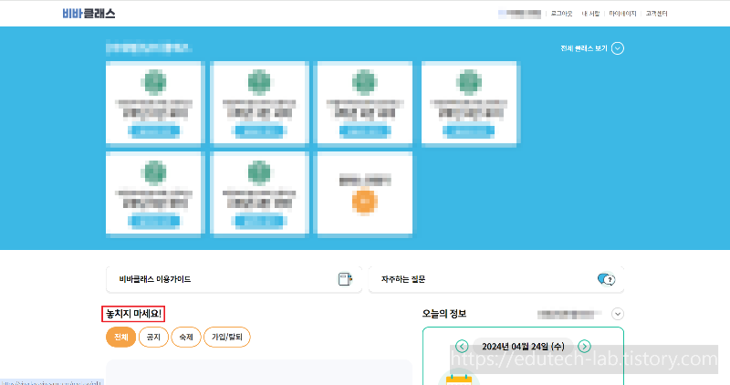 비바클래스에는 '놓치지 마세요' 알림 기능이 있습니다.