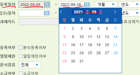 8️⃣등록일자는 자신이 검색하기를 원하는 기간으로 설정합니다.