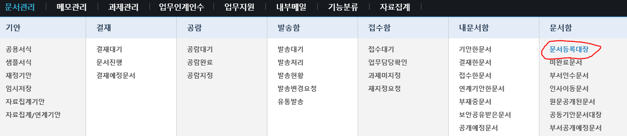 4️⃣문서함의 문서등록대장을 클릭합니다.