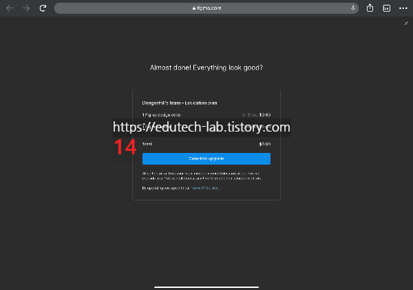 14번 Complete upgrade를 누르면 모든 신청이 끝납니다.