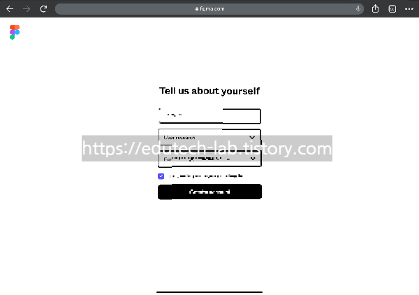 피그마에 가입을 하면 위의 화면처럼 이름을 입력하고, 자신의 직무와 목적을 선택하는 화면이 나옵니다.