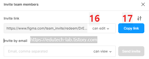 이후에 17번 Copy link를 클릭하면 초대 링크가 복사됩니다.