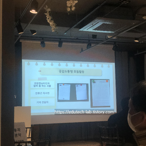 두 선생님의 노력이 돋보였고, 실제로 동작관악교육청의 독서수업사례 발표가 끝나고 워크숍에 참석한 수많은 선생님들이 이 수업과 관련한 관심과 질문이 끊이지 않았다고 합니다.