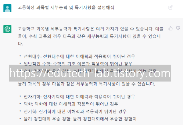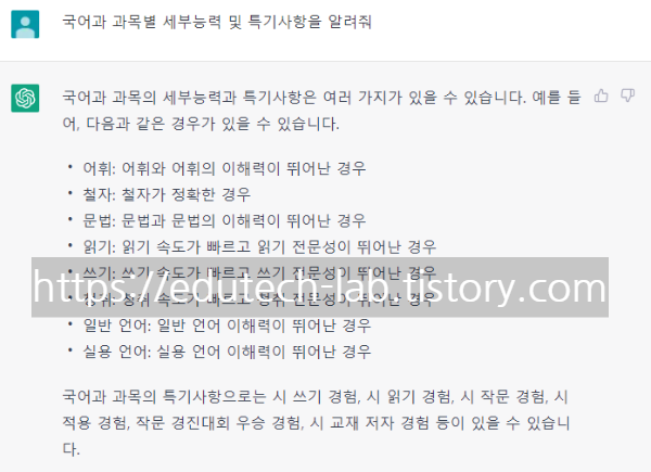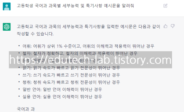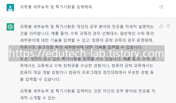 인공지능에게 과목별 세부능력 및 특기사항 입력을 요청한다면?