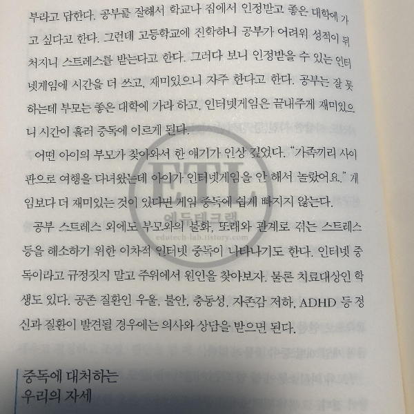 게임보다 더 재미있는 것이 있다면 게임 중독에 쉽게 빠지지 않는다. - -퇴근길 인문학 수업 전환 중에서