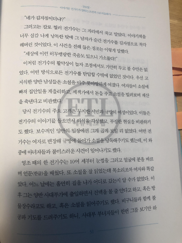 그래서 퇴근길 인문학 수업 전환에서 전기수에 대해 다루는 내용은 제가 다 알고 있는 이야기일 것이라고 생각을 했습니다. 왜냐하면 이 책은 비전공자들을 대상으로 알기 쉽게 인문학을 다루는 내용이다보니 깊이 있게 다루지 못할 것이라고 생각을 했기 때문입니다.