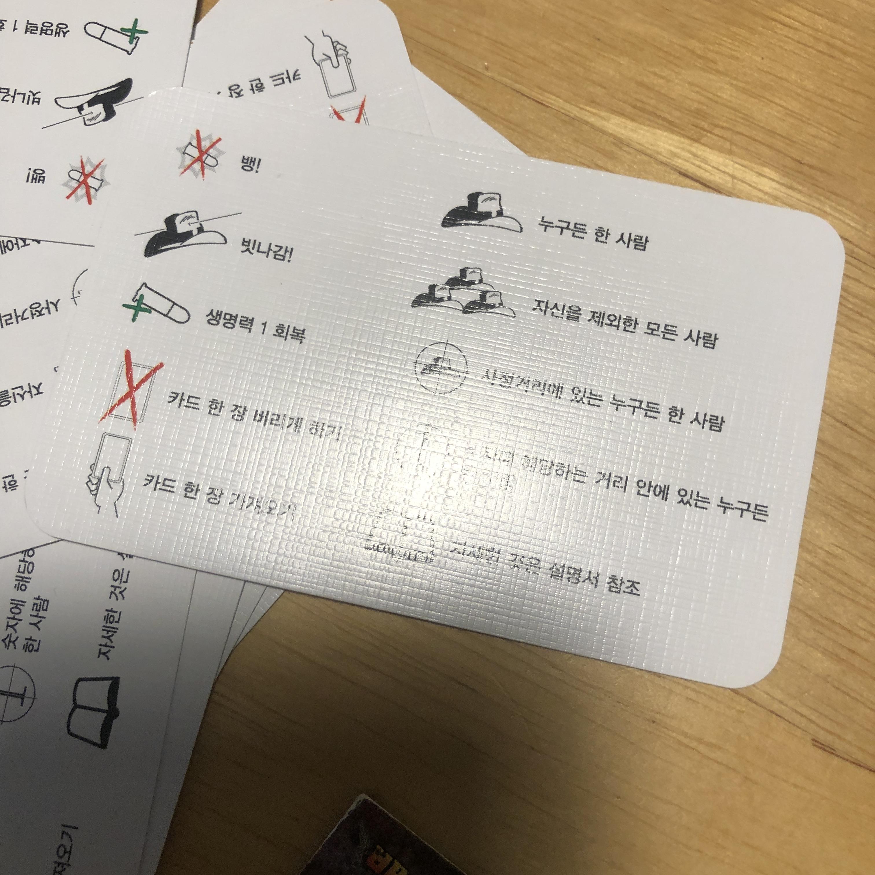 게다가 보드게임 뱅은 원조말고 주사위 보드게임 뱅도 있고 확장팬 뱅도 있습니다. 그래서 잘 모르고 구입하면 낭패를 당할 수 있습니다.