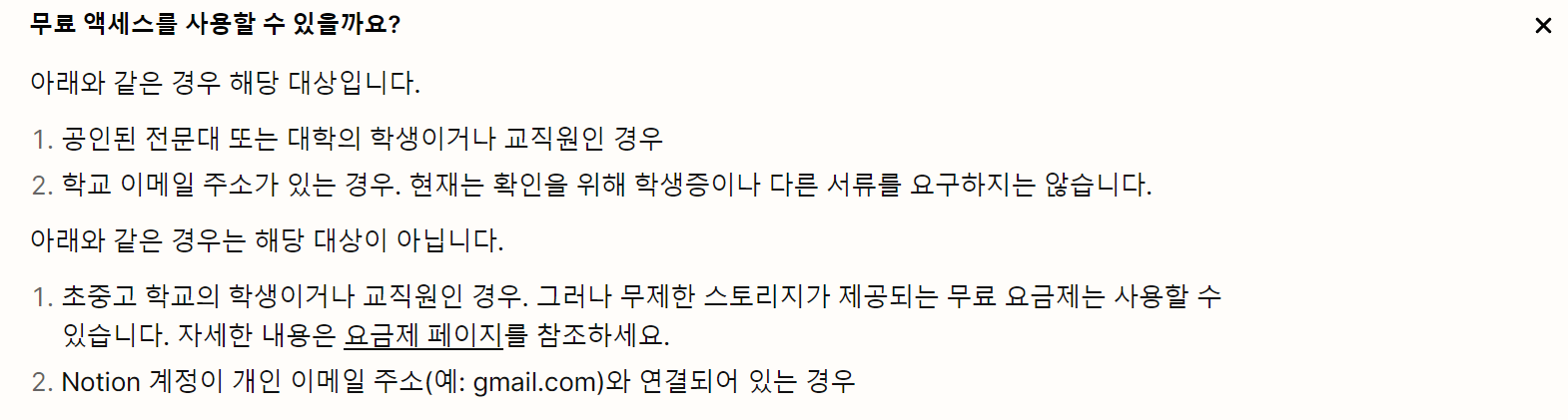다만 대학생은 언제든지 노션 교육용 계정을 신청해서 가질 수 있습니다.