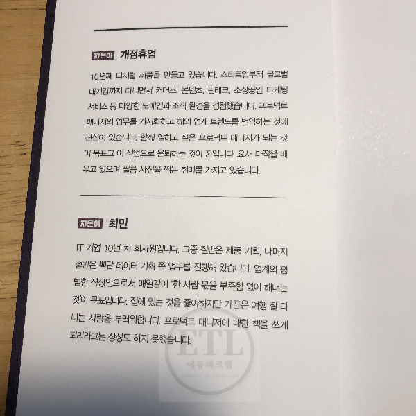 이렇게 상세한 내용을 다룰 수 있는 이유는 바로 10년 차 현직 프로덕트 매니저인 저자 두 분이 함께 글을 썼기 때문입니다.
