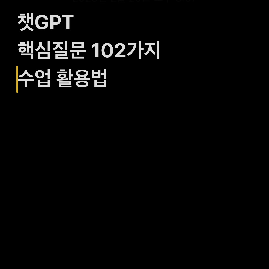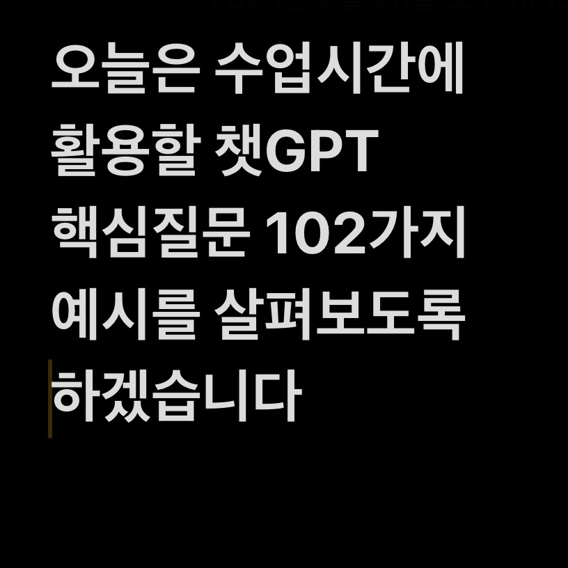 오늘은 수업시간에 활용할 챗GPT 핵심질문 102가지 예시를 살펴보도록 하겠습니다