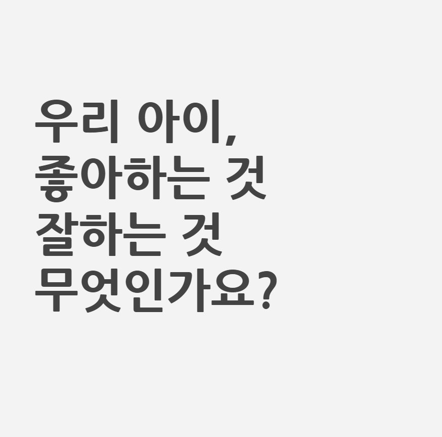 결론 : 진짜 관심을 가져야 할 것은 우리 아이가 무엇을 좋아하는가입니다.