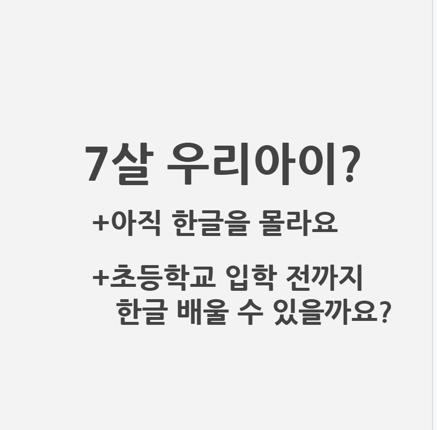 최근에 지인으로부터 고민 상담을 받았습니다. 바로 자녀에 대한 고민이었는데요. 아직 한글을 알지 못한다는 것이었습니다. 그 지인의 아이는 7살이었습니다. 내년에 초등학교 입학을 앞두고 있는데, 아직까지 한글을 모르니 걱정이 많았던 것이죠.