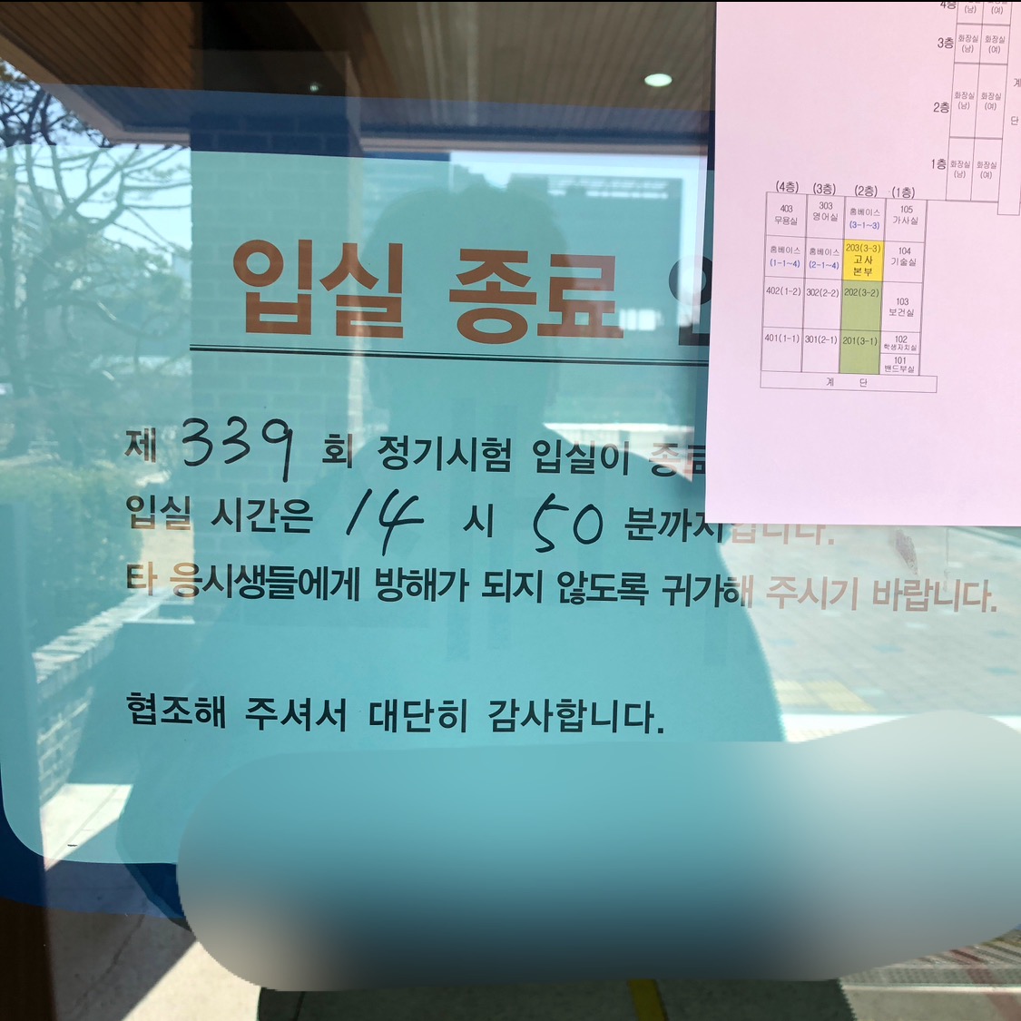 그런데 제가 응시한 고사장에서 14시30분 넘어서 들어온 분이 계셨습니다. 14시 30분에 고사장 정문을 잠그는 것인지 아니면 아예 안잠가서인지는 모르겠으나, 분명 공지된 입실 시간이 지났음에도 들어오는 수험생이 있었습니다.