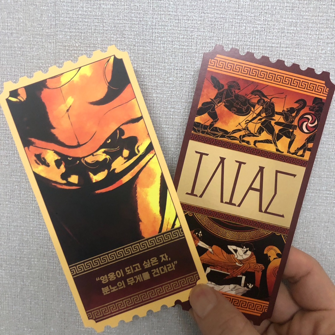 끝으로 '만화로 보는 일리아스: 트로이의 노래'에 함께 제공하는 책갈피와 렌티큘러 카드와 작가노트의 퀄리티도 상당히 높습니다.