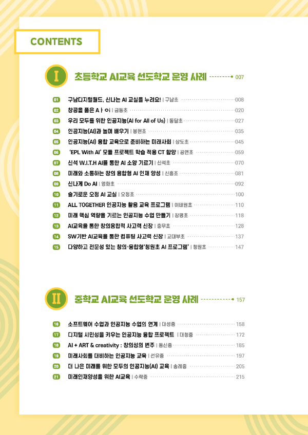 AI교육 선도학교 운영 사례집의 목차는 다음과 같습니다.