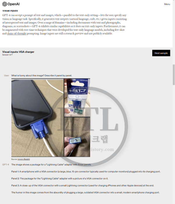 이번에 공개된 GPT-4는 이미지를 입력받아 텍스트로 출력합니다.