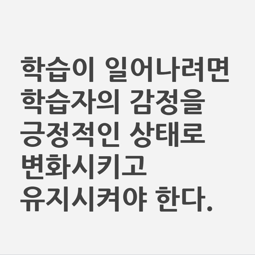 학습이 일어나려면 학습자의 감정을 긍정적인 상태로 만들어야 합니다.