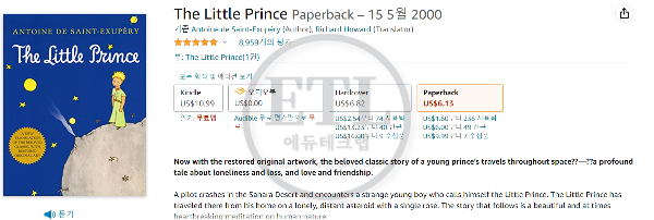 | 1 | "어린왕자" | 생떽쥐베리 | 1943 | 소설 |