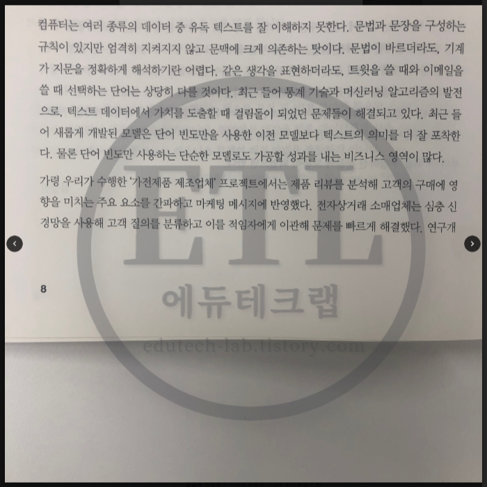 하지만 최근 챗GPT 열풍으로 자연어 분석과 트랜스포머 모델 등에 관심을 갖게 된 저로서는 이번 책은 파이썬 라이브러리를 활용한 텍스트 분석은 어려웠지만 흥미로운 점과 유의미한 지점이 있었습니다.