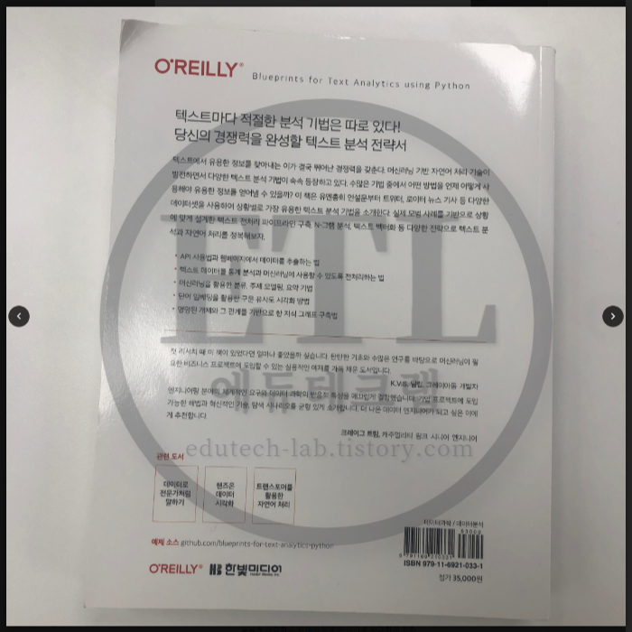 그러면 《파이썬 라이브러리를 활용한 텍스트 분석: Blueprint for Text Analytics Using Python》에 대해서 조금 더 자세히 알아보도록 하겠습니다.