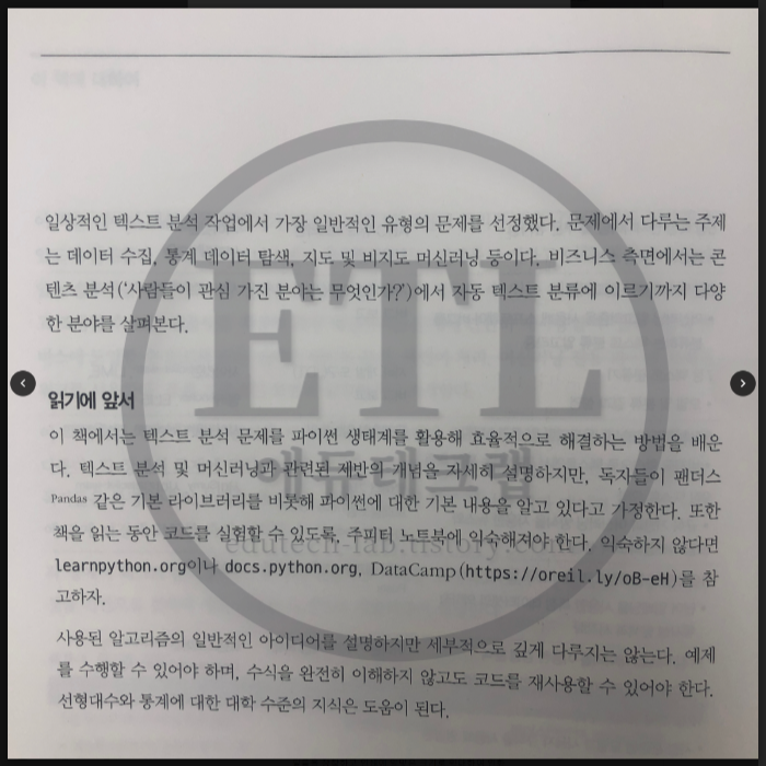 《파이썬 라이브러리를 활용한 텍스트 분석》에 대해서 조금 더 자세히 살펴보도록 하겠습니다.