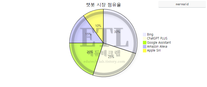 아래는 현재 챗봇 시장의 점유율을 나타내는 mermaid 파이차트 코드입니다.