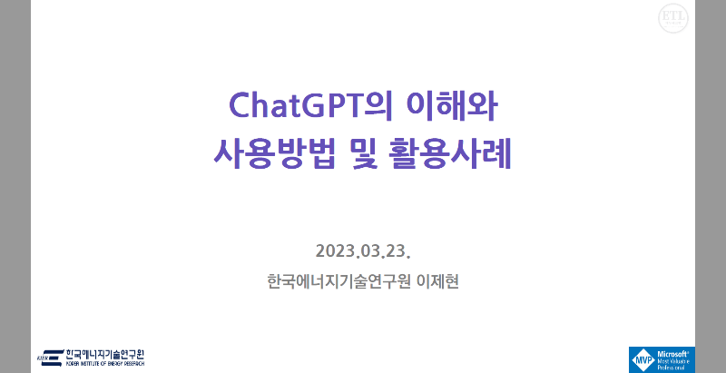 다음 자료는 서울시교육청에서 실시한 챗GPT 따라잡기 인공지능 전문가 특강 강사이신 이제현 책임연구원님의 자료입니다.
