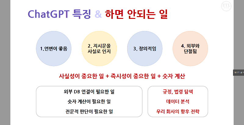 최근 서울시교육청에서 챗GPT 따라잡기 인공지능 전문가 특강을 실시했습니다.
